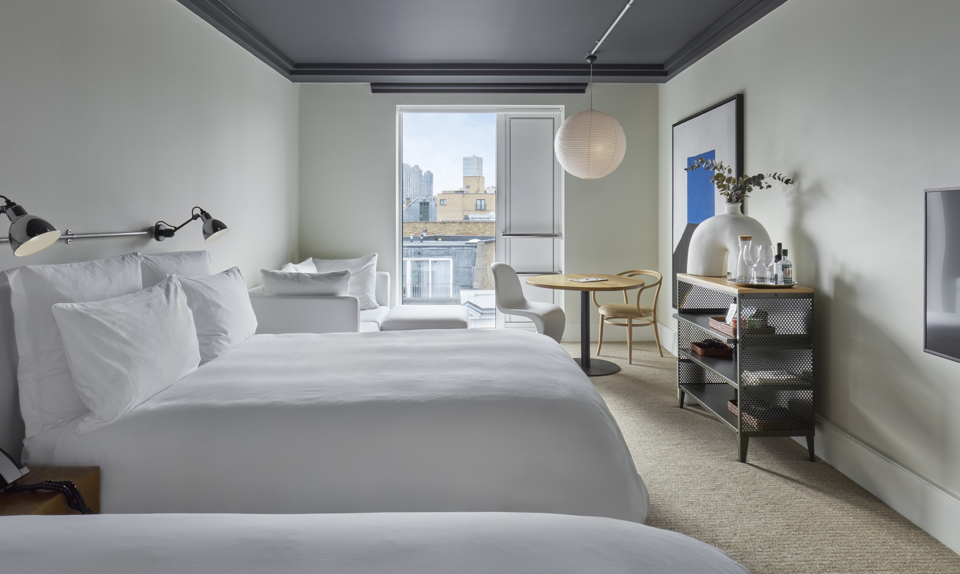 Our Studio Double Double rooms have two super comfy double beds, hybrid work and dining spaces with seating, bespoke art work by Jacu Strauss and a feature tapestry wall. Ideal for overnights and long weekends.